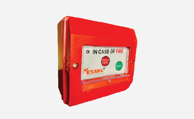 87mm x 87mm x 57mm surface mounted call point device with an operating temperature of -10 degrees to +55 degrees and operating voltage 18 Vdc to 30 Vdc and weight 200 grams red in color.